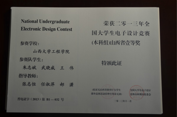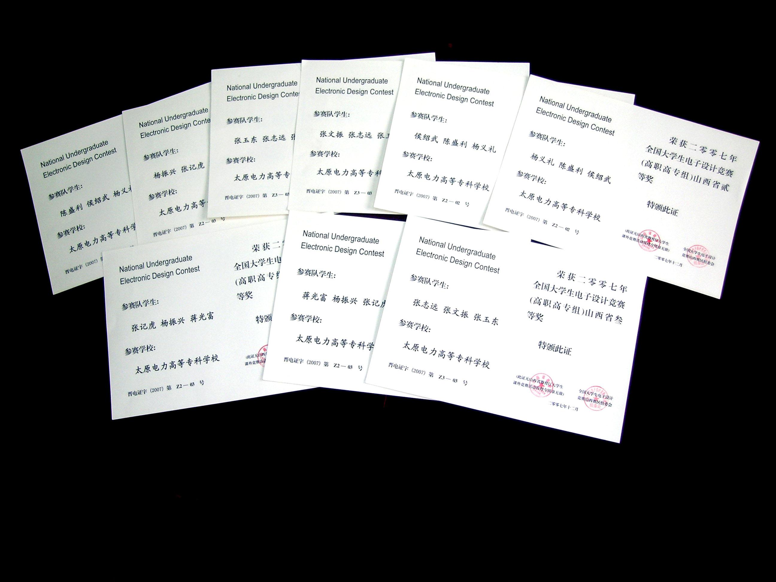 多年的努力使协会积累了丰富的知识与雄厚的实力,同时也取得了很多成就。从建立协会以来,电子协会的各届委员参加了“全国大学生电子设计竞赛”、“全国大学生节能减排社会实践与科技竞赛”、“毕昇杯”全国电子设计竞赛、“‘兴晋挑战杯’科技作品竞赛”等科技竞赛。