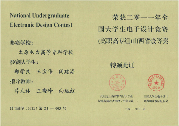 全国大学生电子设计竞赛是教育部倡导的大学生学科竞赛之一,每两年举行一届,至今已经举办了九届。目的在于推动高等学校促进信息与电子类学科课程体系和课程内容的改革,有助于高等学校实施素质教育,培养大学生的实践创新意识与基本能力、团队协作的人文精神和理论联系实际的学风;有助于学生工程实践素质的培养、提高学生针对实际问题进行电子设计制作的能力;有助于吸引、鼓励广大青年学生踊跃参加课外科技活动,为优秀人才的脱颖而出创造条件。