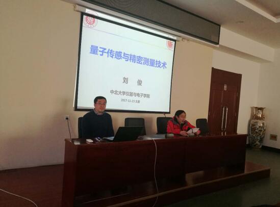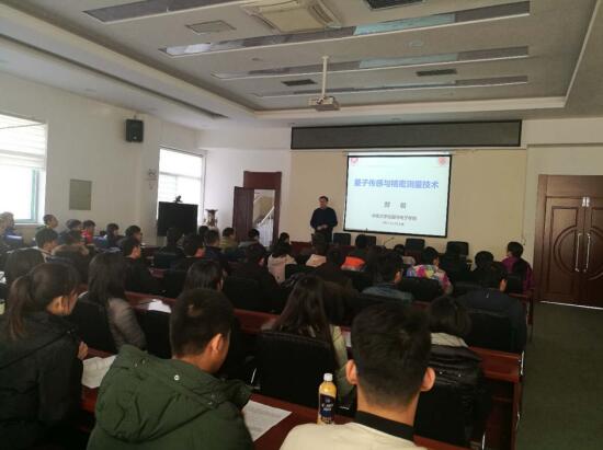 2017年11月23日下午,电子信息工程系邀请中北大学刘俊教授来大东关校区讲学,刘教授以“量子传感与精密测量”为题,为广大师生带来了一场精彩的前沿学术报告。讲座由薛太林主任主持,王玲桃、张志恒、李卫、陈力荣、苏晋荣、王国刚、么莉平、李娜等教师及100余名本科生一同聆听了讲座。