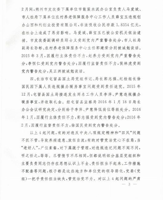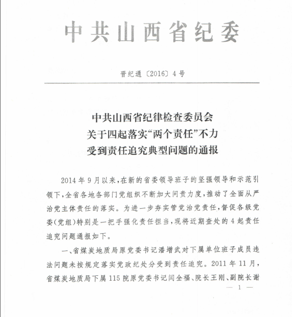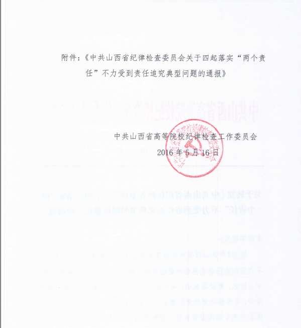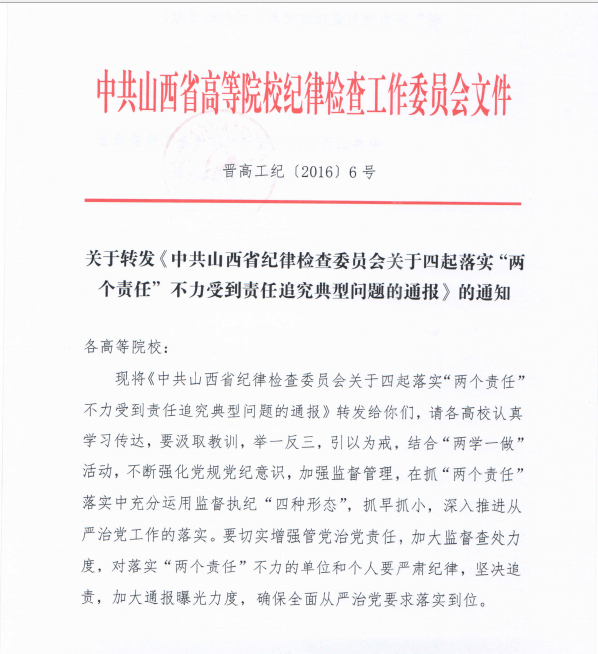 关于转发《中共山西省纪律检查委员会关于四起落实“两个责任”不力受到责任追究典型问题的通报》的通知